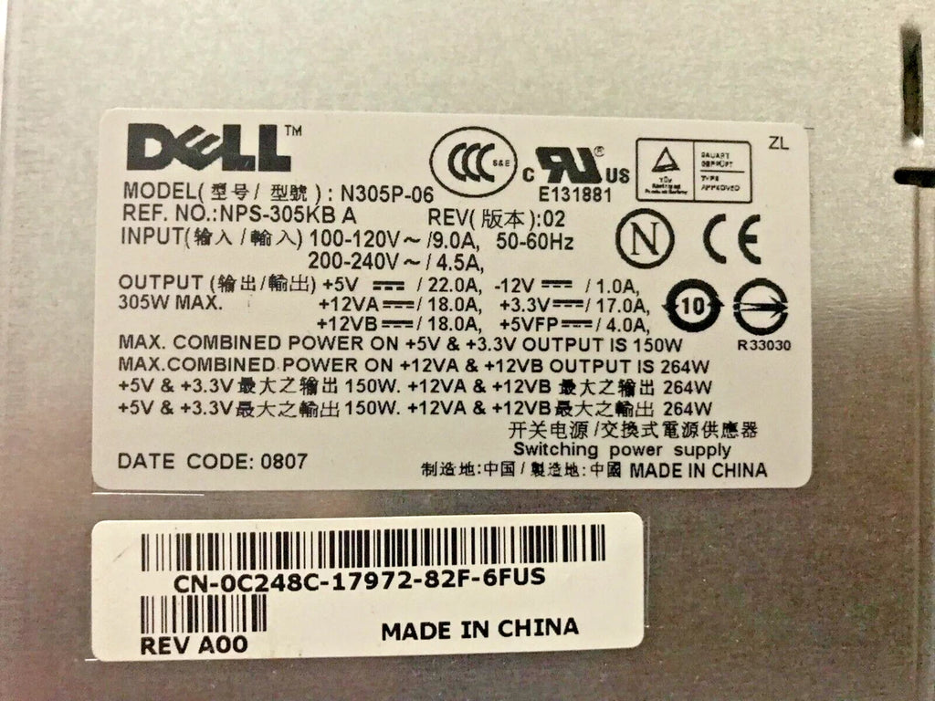 With the Dell N305P-06 Power Supply, users benefit from a dependable power source that supports demanding workloads and ensures system stability. Its compatibility with a range of Dell servers and workstations makes it a versatile choice for IT professionals seeking a balance of quality, reliability, and efficiency in their hardware infrastructure.