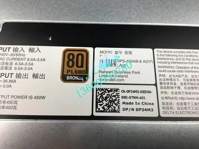 For Dell R430 R440 450W D450E-S0 cold power supply with cable power supply P34M3