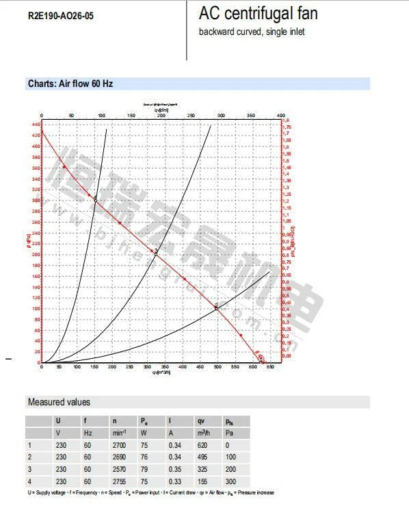 Ventilador centrífugo de 230 V para automatización CNC ebm-papst R2E190-AO26-05