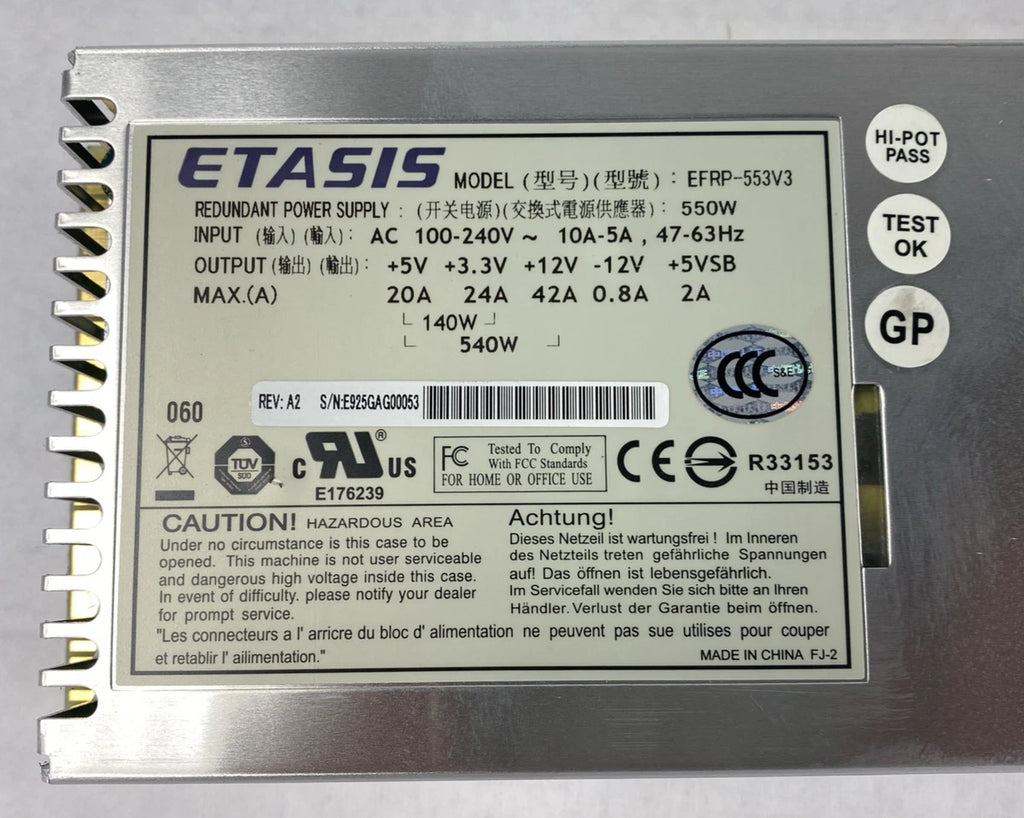 ETASIS Model EFRP-553V3 550W Redundant Power Supply