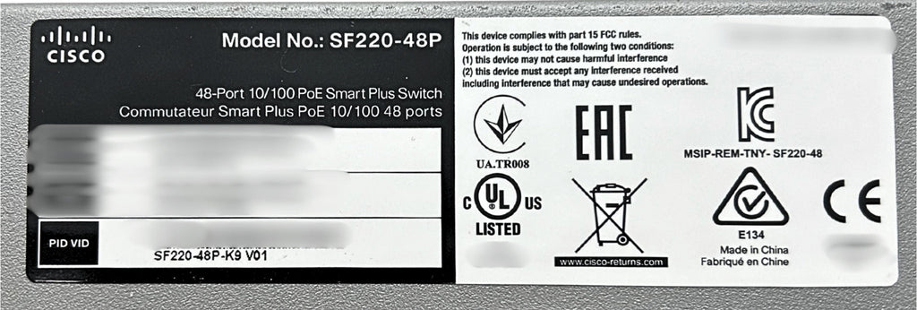 Cisco SF220-48P Cisco SF220-48P Smart Plus Switch PoE 10/100 48 Ports