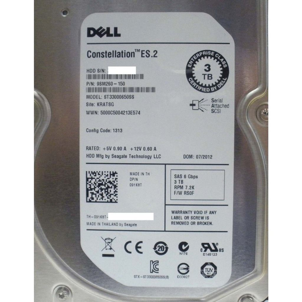 Dell 91K8T Hard Drive 3TB 7.2K SAS 3.5in
