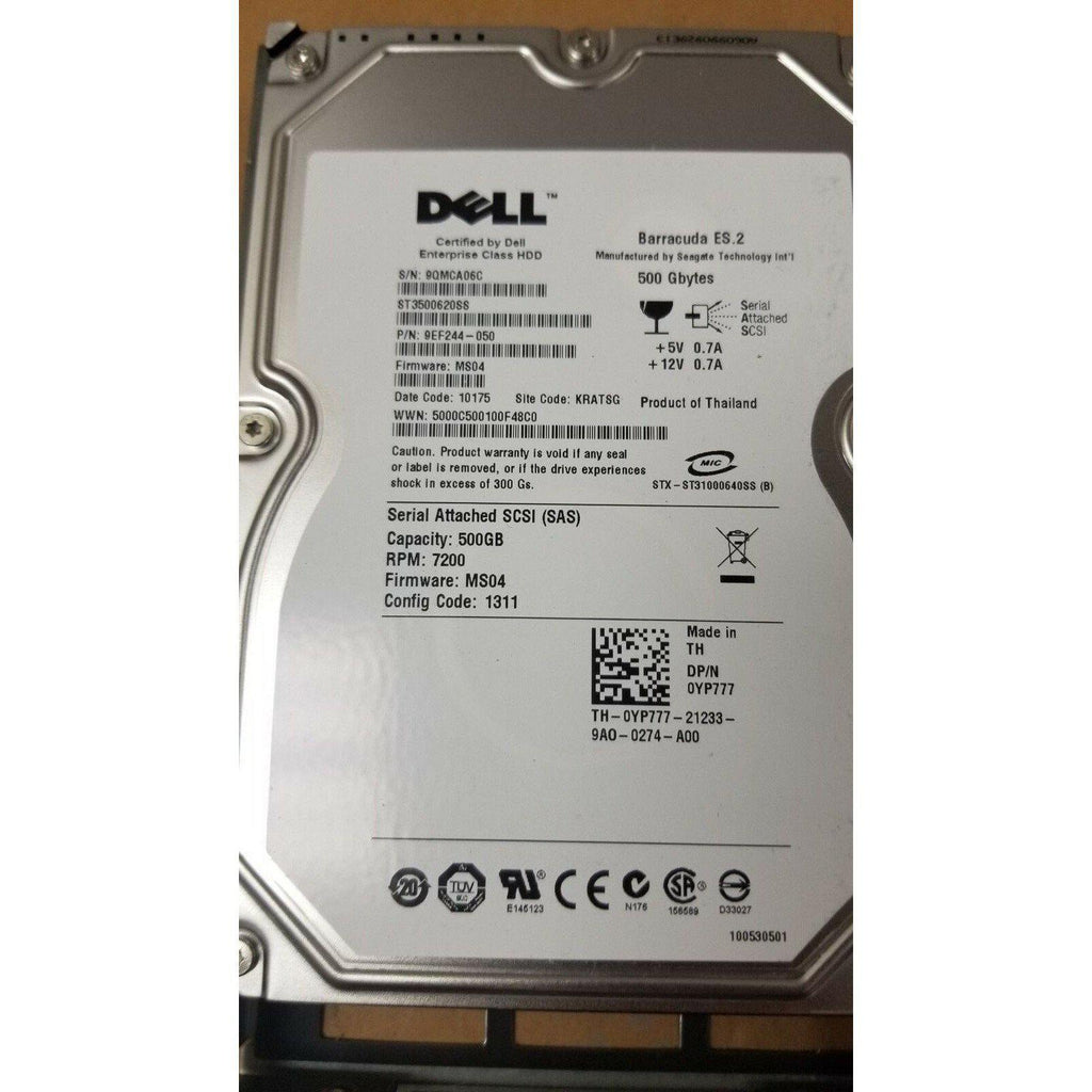 Dell YP777 Seagate ST3500620SS 500GB 7200RPM 3.5" SAS Enterprise HDD con bandeja