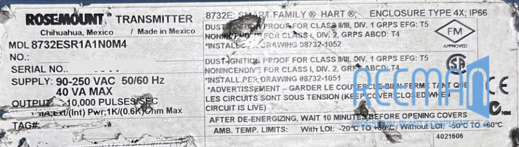 Flowmeter MDL8732ESR1A1N0M4 Rosemount