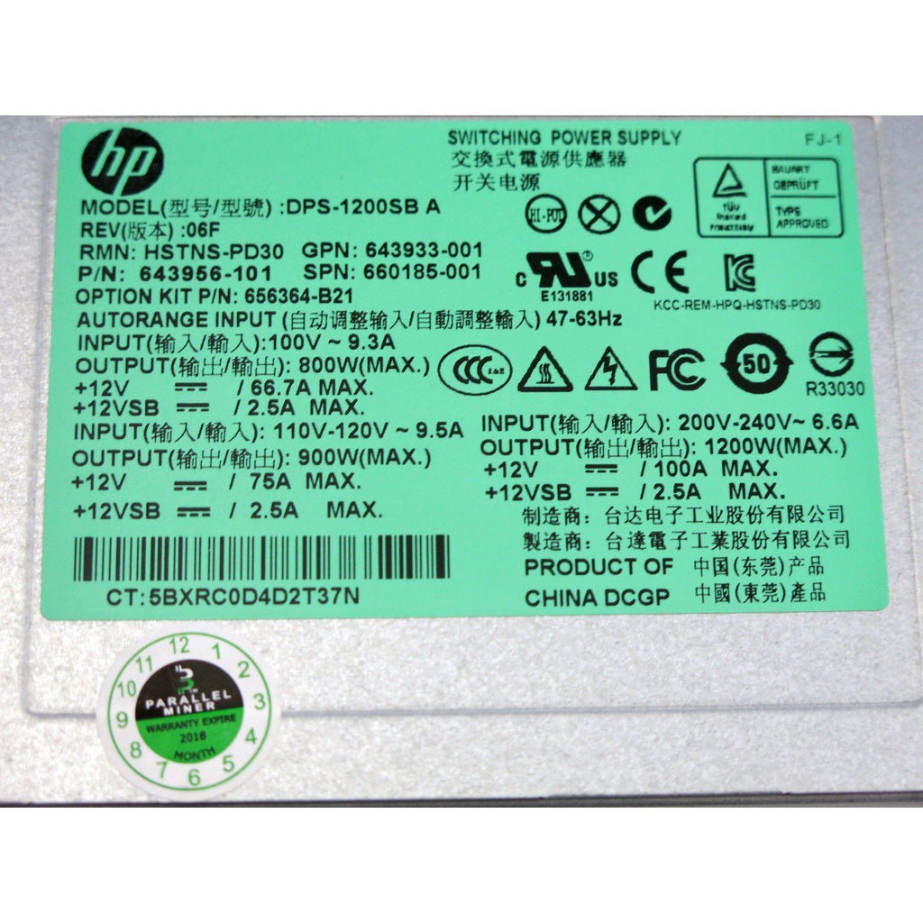 Fuente de alimentación para servidor HP HP 1200 Watt G5 G6 G7 G8 ProLiant DL380 DL385 DL785 ML350 719826776647