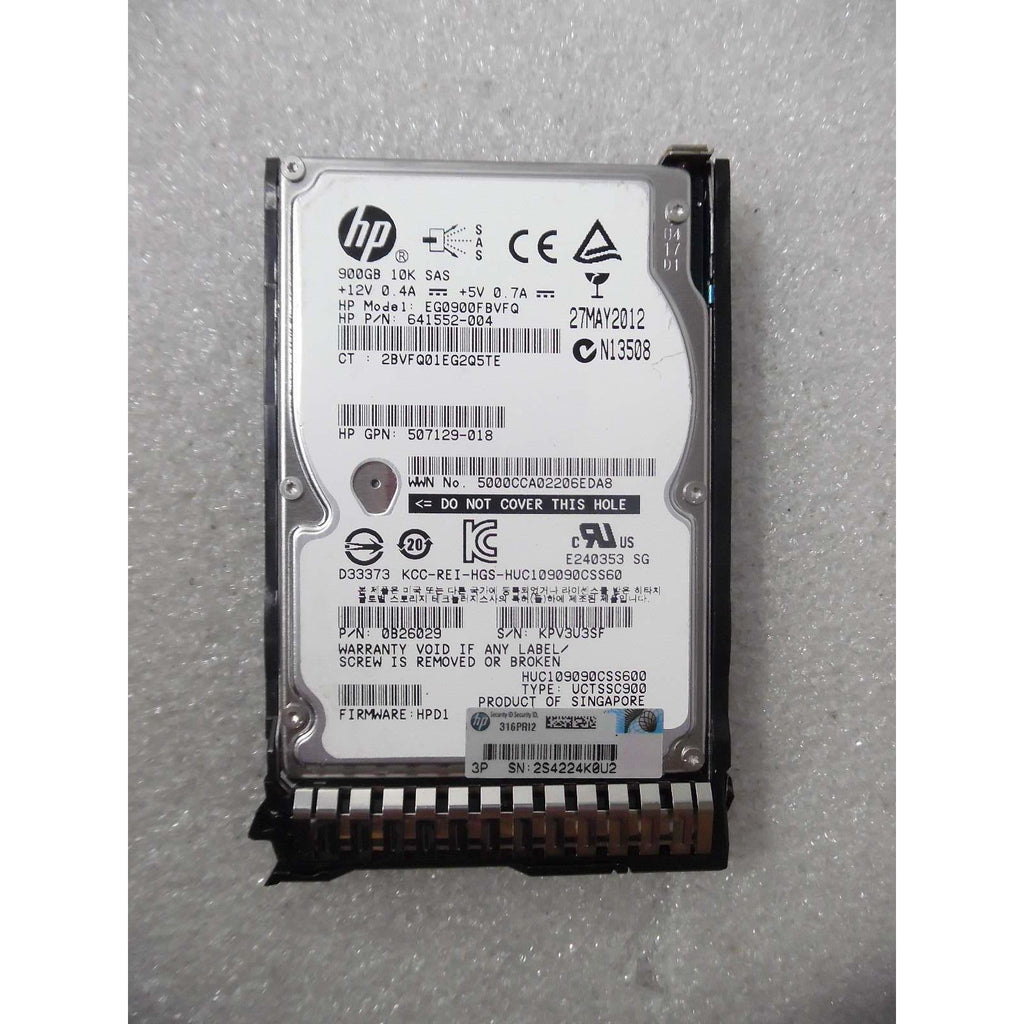 Disco duro SAS de 2,5" y 10 000 RPM de HP HP 653971-001 // EG0900FBVFQ