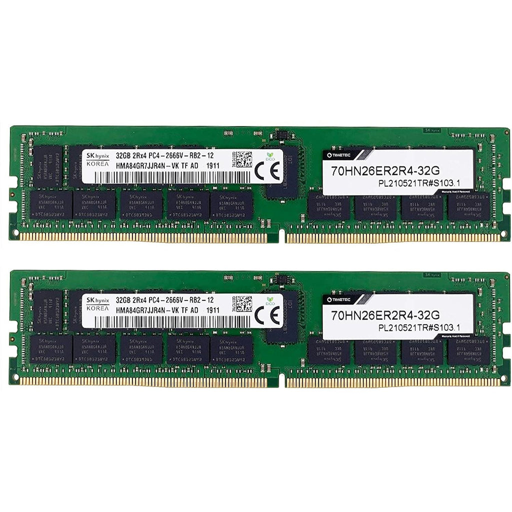 memoria Hynix Original 64GB KIT(2x32GB) DDR4 2666MHz PC4-21300 Registrado ECC 1.2V CL19 2Rx4 Dual Rank 288 Pin RDIMM Server Memory Ram Module Upgrade (64GB KIT(2x32GB))