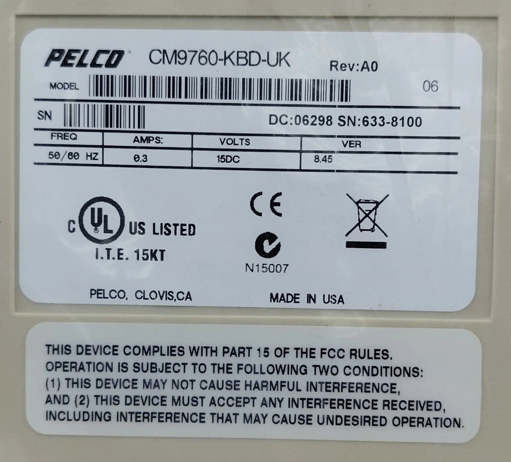 PELCO CM9760-KBD-UK Intelligent Matrix Keyboard 50/60Hz Complete Accessories