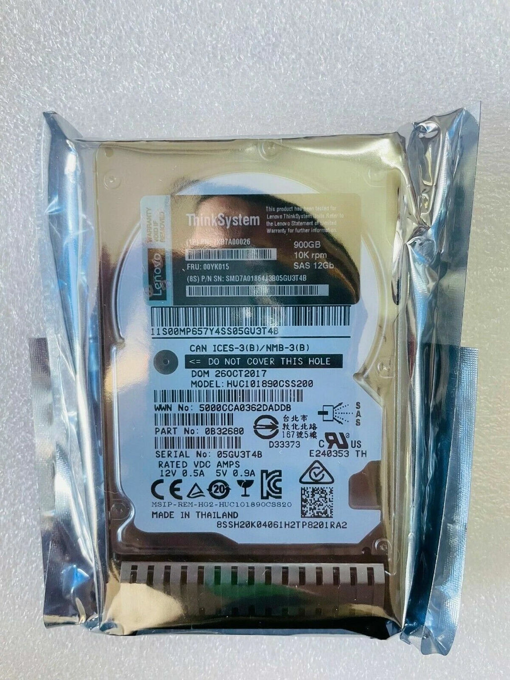 Lenovo 7XB7A00026 00YK015 900GB 10K 12Gb/s SAS 2.5" Hot Swap 512n HDD Hard Drive